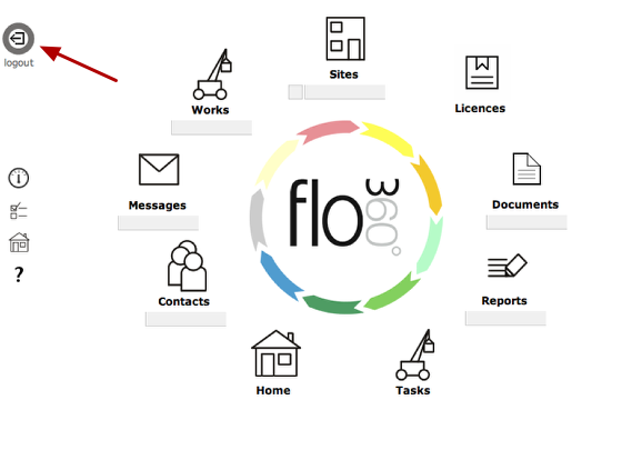 Most of the screens in Flow360 also have a logout button near the bottom of the lefthand side bar. Simply click to immediately end your session and logout.