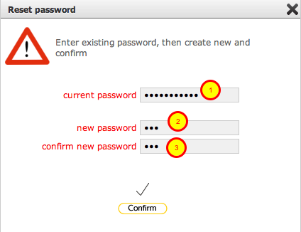 To change your password, enter your current (auto issued) password (1), then enter the new password (2) and confirm it (3).
