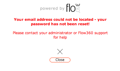 If Flow360 successfully locates your user account from the entered user name, and a registered email address was also found, your password will be reset and your will be sent an email and message confirming the new password.