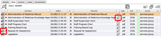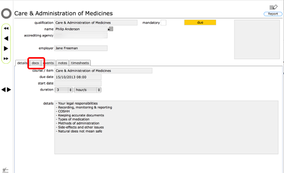 On the docs tab list you will see all documents that relate to the qualification or training and you can open these directly from the list by clicking the view button on any row.