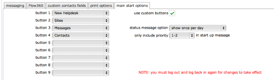 Choose if and when the status message shows - this gives notification of upcoming and overdue scheduled tasks, works items, helpdesk issues as well as qualification expiry and renewals. For tasks and works you can also choose the priority level/s to include in the message counts.