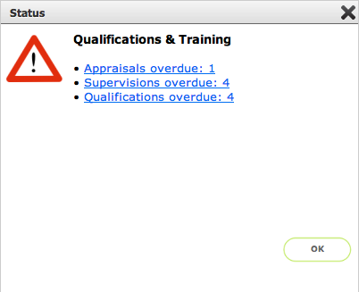 To trigger the status message manually, click the Status button on the start screen. You may do this at any time and the status message will show.